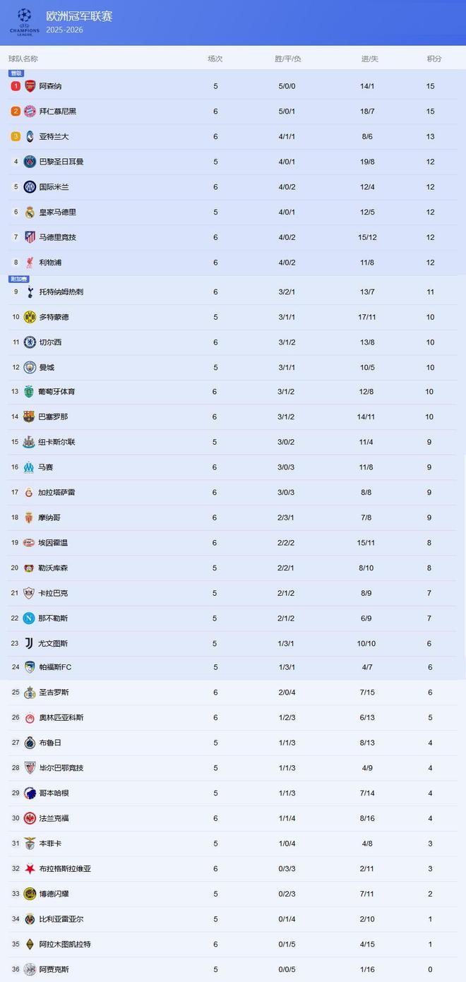 - 随着利物浦1-0绝杀,巴萨2-1翻盘,欧冠最新积分榜如下,国米连败